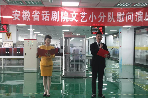 爵士舞《我的新衣》、歌曲《相親相愛》、朗誦《城市的描繪師》、團舞《歡聚一堂》、創意近景魔術、特色黃梅戲等形式多樣的精彩節目將傳統藝術與現代藝術創新融合,揚時尚蓄古韻,給人以耳目一新的全新視聽體驗,贏得了大家的連連掌聲。值得一提的是,生產制造中心總經理孫曉峰參與了黃梅戲的互動表演,孫總嘹亮專業的唱腔,臺下觀眾無不為其喝彩。表演過后,大家仍意猶未盡,津津樂道。技術員小王說道:“這次表演我感受到了政府和安徽省話劇院對我們普通職工群眾的關懷,心里很暖,可以鼓足干勁投入工作了。”