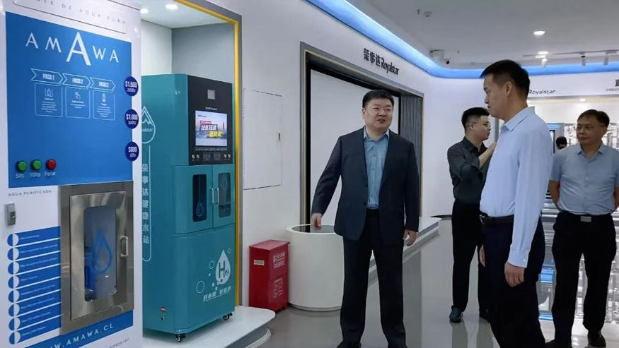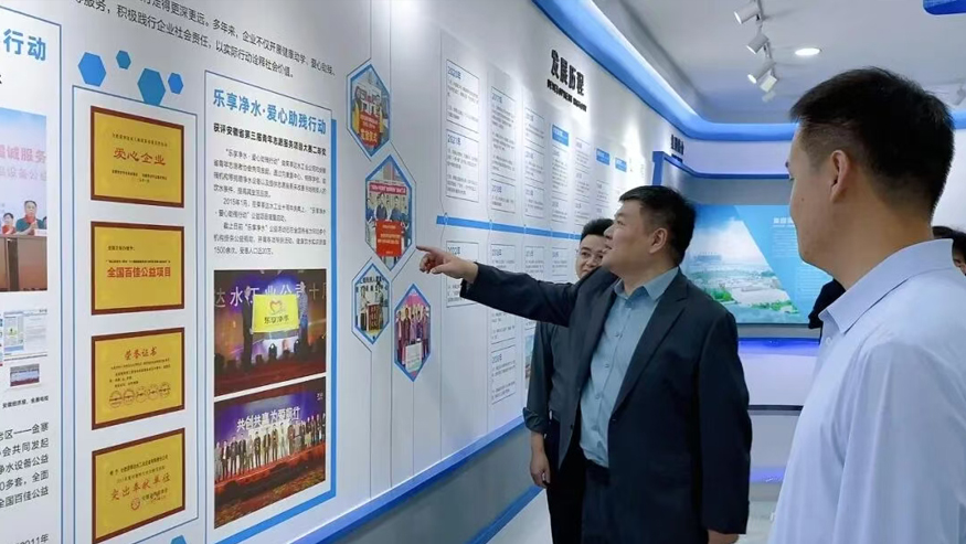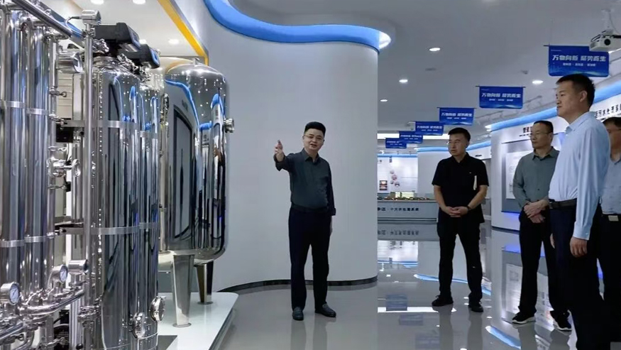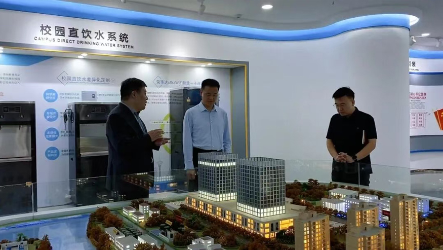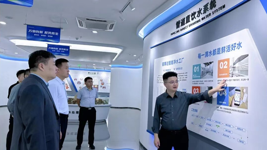 領(lǐng)導(dǎo)一行參觀(guān)了解集團(tuán)全屋智慧凈水、管道直飲水、校園智慧飲水、單位/工廠(chǎng)直飲水等項(xiàng)目,實(shí)現(xiàn)凈水行業(yè)全領(lǐng)域項(xiàng)目發(fā)展。