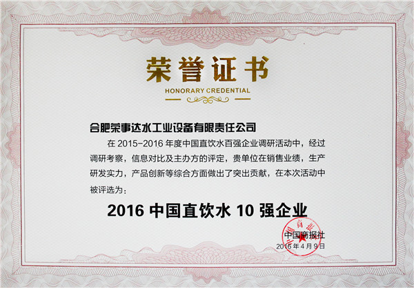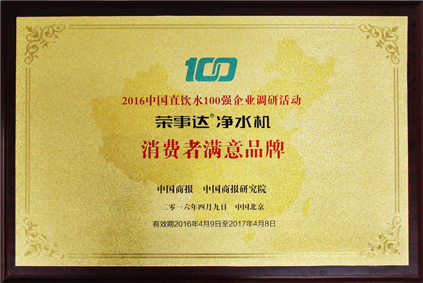 評審委員會由主辦方領(lǐng)導(dǎo)、凈水行業(yè)專家、戰(zhàn)略媒體、行業(yè)媒體、第三方調(diào)研機(jī)構(gòu)及消費(fèi)者代表組成,用國際通行方式,歷時三個多月,依據(jù)中國商報研究院發(fā)布的權(quán)威、公正,有影響力的凈水企業(yè)調(diào)研報告,綜合考慮消費(fèi)者對于品牌的認(rèn)知度、忠誠度及美譽(yù)度,評選出包括美的、3M等在內(nèi)的百強(qiáng)企業(yè),榮事達(dá)名列前茅,榮獲“中國直飲水10強(qiáng)企業(yè)”、“消費(fèi)者信賴企業(yè)”、“中國凈水行業(yè)十佳服務(wù)商”、“消費(fèi)者滿意品牌”多項大獎。