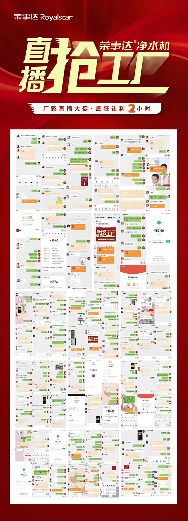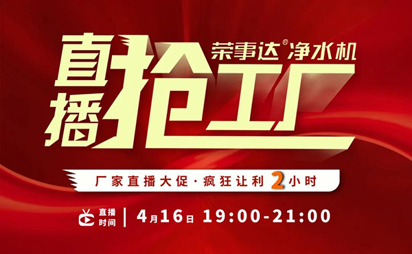 瞄準網(wǎng)絡化營銷聚變新格局,榮事達水工業(yè)集團以創(chuàng)新思維持續(xù)引領凈水銷售模式升級,借力現(xiàn)場感與代入感超強的新媒體直播平臺,貫通線上線下渠道,助力經銷商快速銷售。4月16日,榮事達2020年硬核大動作——“榮事達凈水機?直播搶工廠”網(wǎng)絡直播營銷活動強勢落地,贏戰(zhàn)市場!