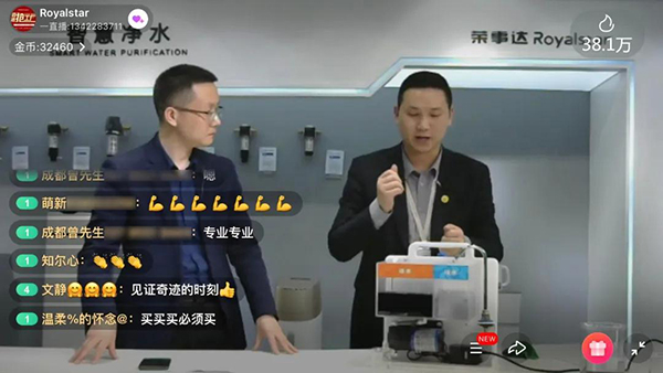 專業(yè)的技術講解后,榮事達為觀眾帶來了箱體LED純水機、300G智能反滲透凈水機、即熱飲水機、智能凈飲一體機4款備受市場歡迎的“明星”產品,并詳細介紹了濾芯元件、產品功能、售后保障等各方面的獨特優(yōu)勢。同時,現(xiàn)場更是發(fā)布了廠家直供優(yōu)惠、直播間超低折扣、預定讓利以及多重禮品等超級福利,不斷掀起一波波搶購熱潮,互動熱情持續(xù)飆升!