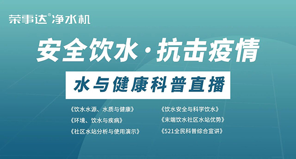 在新冠疫情的特殊時期,榮事達聯通線上線下網絡,走進終端用戶社區、企業物聯網產品體驗中心、企業科研實驗室等區域,圍繞“飲水水源、水質與健康”、“飲水安全與科學飲水”、“環境、飲水與疾病”、“末端飲水社區水站優勢”等主題開展了場全民科普直播。講師們采用現實案例分析、趣味互動問答、生活知識講解、水質安全實驗等形式,讓大眾更深刻地知道健康水的標準以及水與人體健康的關聯性,共同樹立正確的飲水觀念,科學合理飲水。