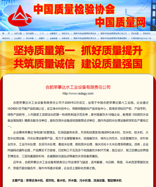 榮事達水工業集團積極響應全國“質量月”活動,彰顯企業的社會責任和擔當,面向全國用戶做出相關產品和服務質量誠信承諾,一舉拿下五項殊榮,相關承諾和獲獎情況已在《中國質量網》《中國經濟網》《中國產品質量信譽網》在線發布。