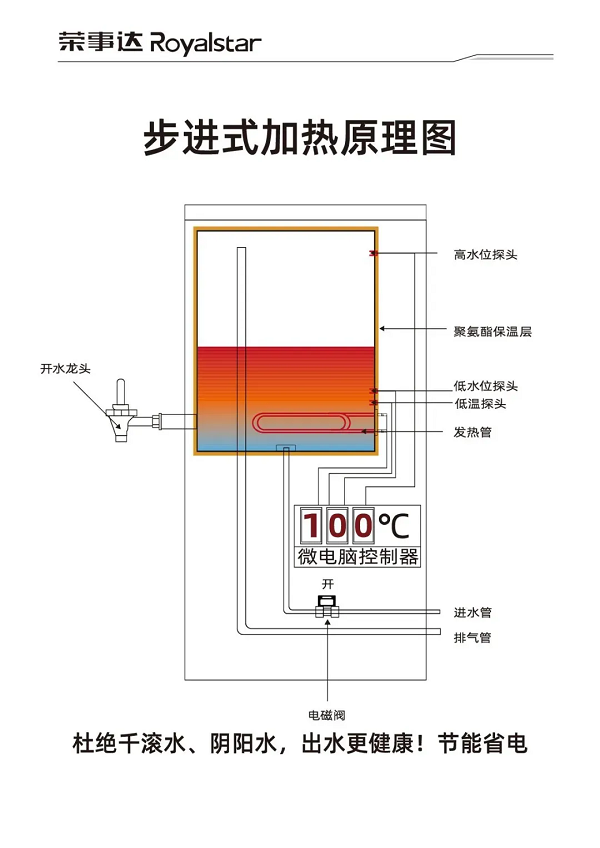 設(shè)備采用了RO反滲透、紫外線殺菌、多級凈化等先進(jìn)工藝,有效去除了水中的泥沙、鐵銹、重金屬、余氯等有害物質(zhì),確保水質(zhì)干凈、安全。同時,步進(jìn)式加熱設(shè)計避免了“陰陽水”的產(chǎn)生,保證了連續(xù)供應(yīng)開水的品質(zhì)。