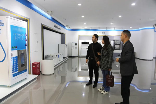 在現(xiàn)場(chǎng),國(guó)際貿(mào)易負(fù)責(zé)人向客戶闡述了公司在新質(zhì)生產(chǎn)力發(fā)展趨勢(shì)下,運(yùn)用“物聯(lián)網(wǎng)+社區(qū)服務(wù)終端”的理念,推出智能凈水工廠、自助售水機(jī)等新型社區(qū)終端服務(wù)項(xiàng)目,旨在實(shí)現(xiàn)智能化社區(qū)管理。客戶對(duì)此創(chuàng)新且可持續(xù)的高質(zhì)量發(fā)展模式表示贊賞。