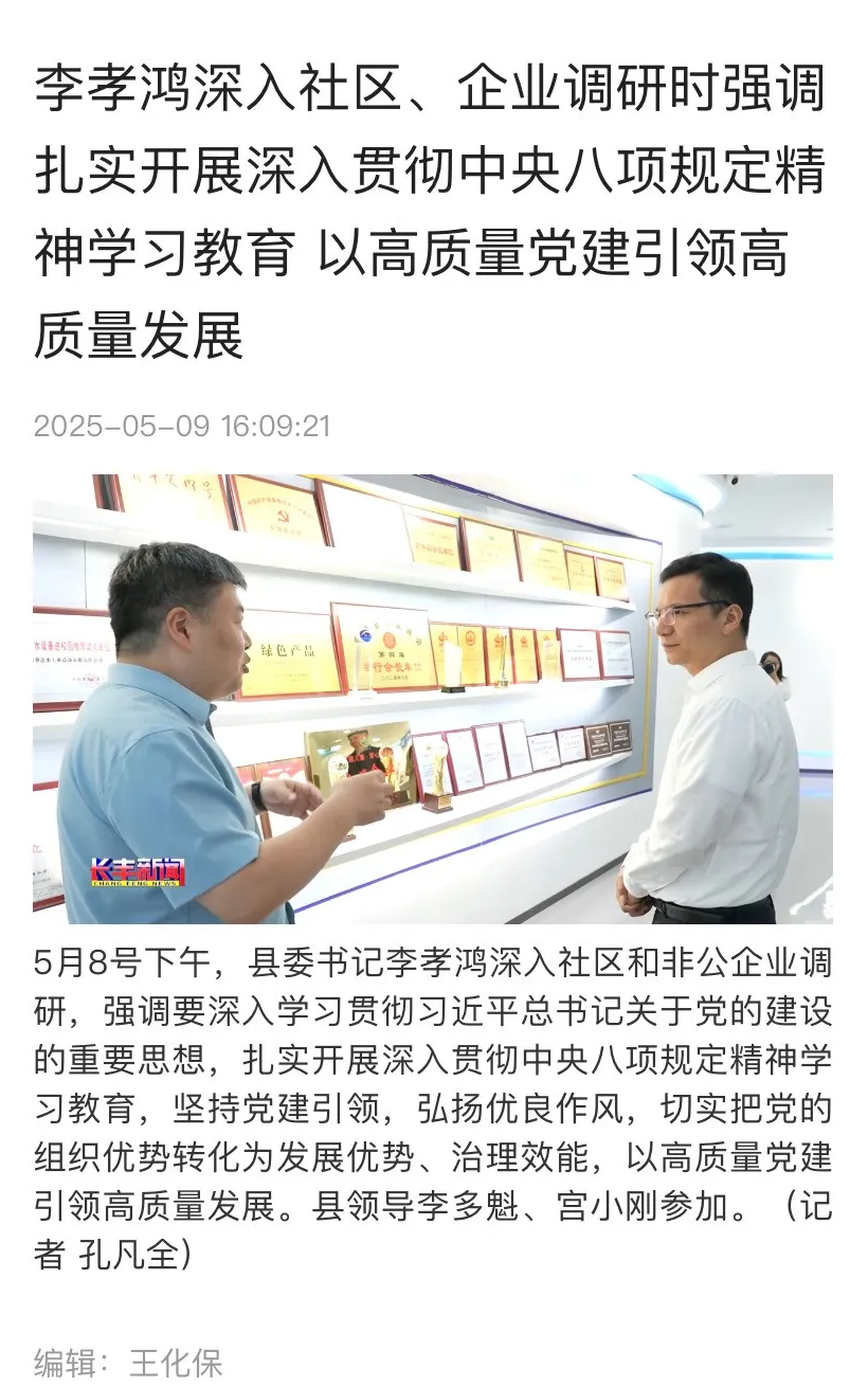 縣委書記李孝鴻肯定了榮事達水工業立足產品創新、拓展多元化應用場景的發展模式。他勉勵企業持續深耕細分領域,進一步拓寬應用場景,增強市場核心競爭力;同時強調要深化黨建與生產經營融合,以高質量黨建引領企業可持續發展,積極向專精特新“小巨人”企業邁進。李書記表示,縣委縣政府將強化政策扶持、優化資源配置,全力為企業發展保駕護航。