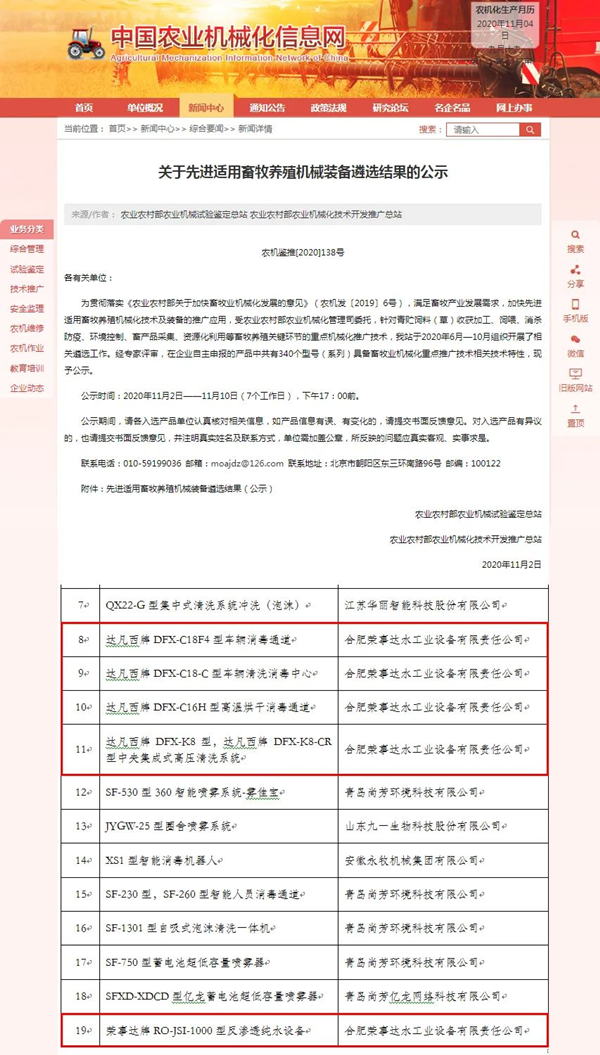 重磅!榮事達反滲透純水設備、防疫洗消設備成功入選國家農業農村部先進適用畜牧養殖機械裝備遴選名單