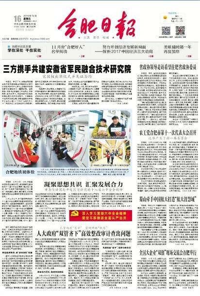 12月16日,中共合肥市委機關報《合肥日報》頭版專題報道由國家工信部指導、榮事達獨家承辦的全國大企業“雙創”現場交流會活動,報道中提出:本次會議...