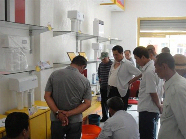 膠南地區(qū)水質(zhì)檢驗(yàn)TDS值偏高,水質(zhì)狀況較差,代理商在開(kāi)業(yè)當(dāng)天專門(mén)舉辦了健康飲水知識(shí)講座,普及凈水知識(shí),獲得了當(dāng)?shù)鼐用竦母叨日J(rèn)可。為了慶祝開(kāi)業(yè)、回饋當(dāng)?shù)叵M(fèi)者,開(kāi)業(yè)期間購(gòu)機(jī)顧客均可享受折扣優(yōu)惠,并獲贈(zèng)精美禮品。